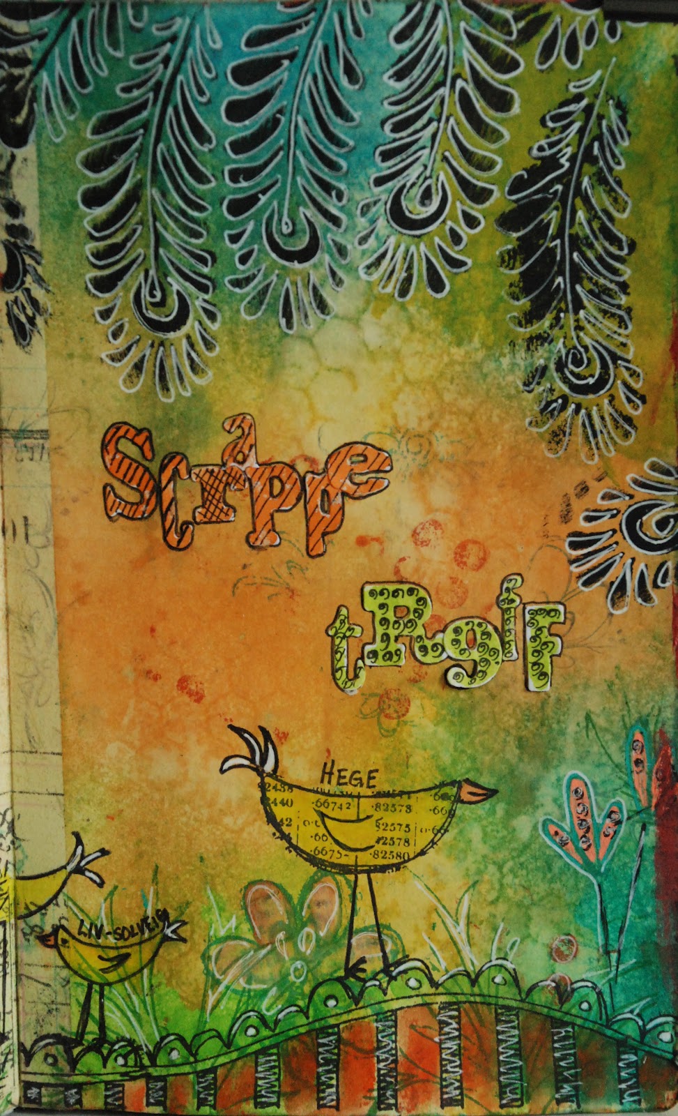 Etter å ha sprayet ut hjerte og vinger, stemplet jeg med et Tim H. tekstempel over vingene, sveipa over med litt maling og Rock Candy!;)